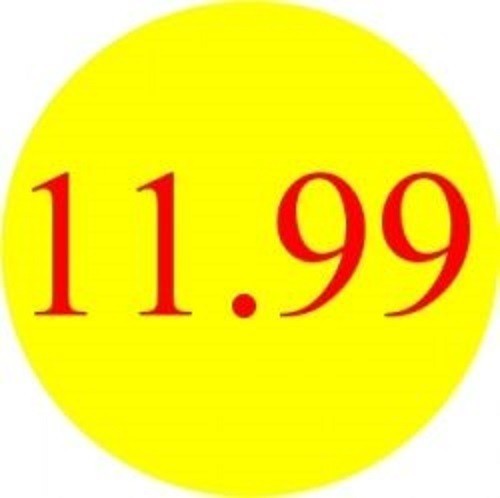 Highlight your special offer products with these quality semi-glossed paper die-cut "11.99" promotional labels. These promo labels come with a peelable adhesive and the diameter of the label is 40mm. This pack comes in a quantity of 1000 labels. These labels can either be applied by hand or with an applicator.Use the drop down menu to select which colour combination you would like.
